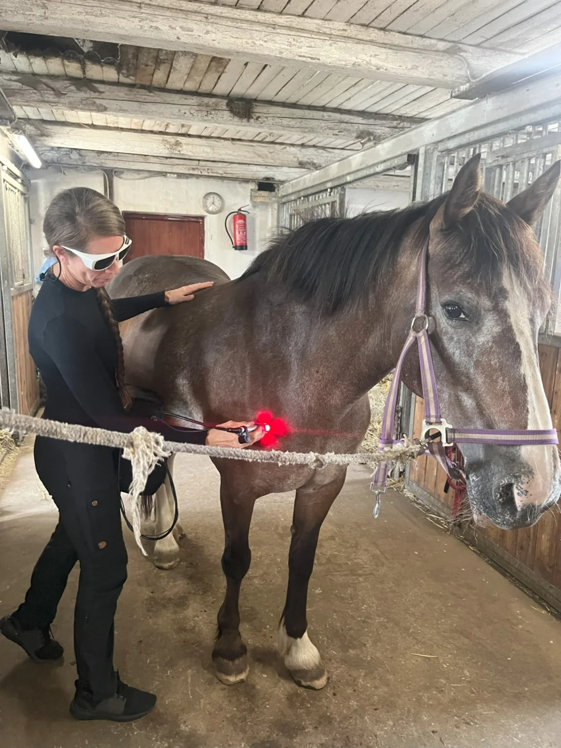 En hest med seneskade på bagbenet blev behandlet med medicinsk laser over seks sessioner. Behandlingen har fremmet helingsprocessen, reduceret inflammation og øget blodcirkulationen i det skadede væv. Efter endt behandlingsforløb er hesten nu haltfri og i kontrolleret genoptræning med rigtig god fremgang. Denne case viser, hvordan medicinsk laser kan være et effektivt supplement i behandlingen af seneskader og bidrage til hurtigere og mere holdbar restitution.